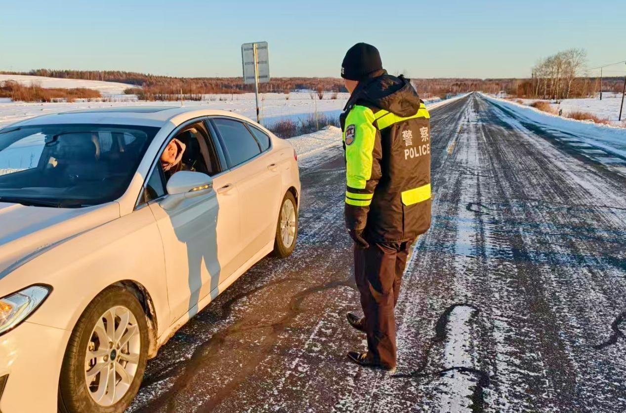 寒夜車輪爆胎 呼瑪交警“警”急救援 暖心服務(wù)顯擔當