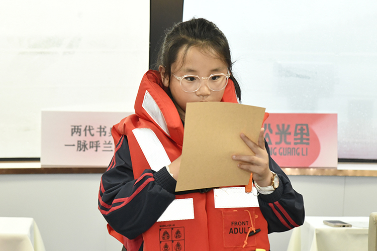 活動在《呼蘭河傳》朗讀片段的音曲播放中拉開帷幕。30余位文學(xué)愛好者與青少年閉眸冥想,在江水潺潺聲中走進(jìn)蕭紅筆下的呼蘭河世界。15組家庭依次分享對蕭紅及其作品的認(rèn)知,動情朗讀《呼蘭河傳》經(jīng)典段落——當(dāng)“嚴(yán)冬一封鎖了大地的時候”等文字在江面上回蕩,百年前的市井煙火與眼前的江河風(fēng)光悄然重疊。