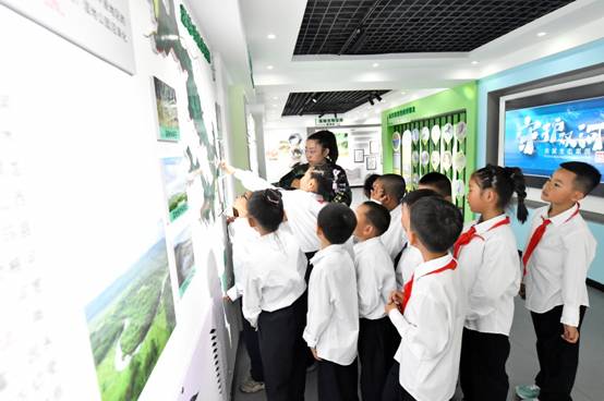 同日,來自勵(lì)志學(xué)校的師生們走進(jìn)雙河源國家濕地公園宣教館,參加濕地科普活動(dòng)。館內(nèi),講解員用通俗易懂的語言,為師生們介紹了濕地的種類、特征,以及濕地在維護(hù)生態(tài)平衡、提供水源涵養(yǎng)、保護(hù)生物多樣性等方面不可或缺的作用。學(xué)生們認(rèn)真聽講,不時(shí)提出問題,互動(dòng)積極。在隨后的環(huán)節(jié)中,學(xué)生們還參與了濕地保護(hù)主題的小游戲,在輕松的氛圍中加深了對保護(hù)濕地的理解。