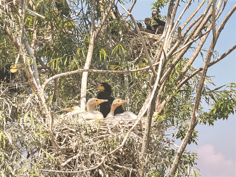 本報訊(孫智勇 記者董新英)近日,黑龍江肇東千鶴島旅游風景區(qū)傳來令人振奮的消息,工作人員在日常鳥類監(jiān)測中,驚喜發(fā)現(xiàn)一窩全國罕見的白鸕鶿在巢穴中。這也是千鶴島旅游風景區(qū)首次記錄到白鸕鶿的蹤跡,為區(qū)域生物多樣性研究提供了全新樣本。