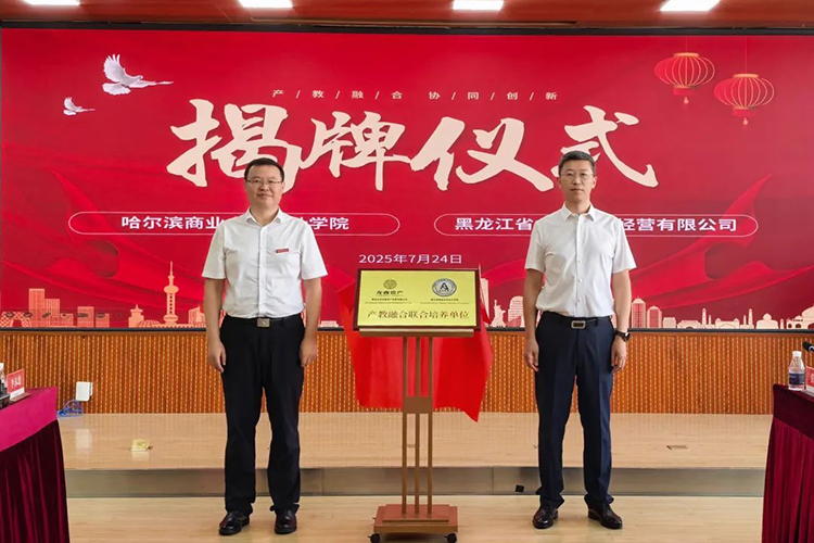 活動(dòng)中,王彬、趙大偉共同為“產(chǎn)教融合聯(lián)合培養(yǎng)單位”揭牌。龍睿公司黨委委員、總會(huì)計(jì)師劉躍剛,哈爾濱商業(yè)大學(xué)會(huì)計(jì)學(xué)院院長(zhǎng)梁運(yùn)吉代表雙方簽署了《戰(zhàn)略合作協(xié)議》及《財(cái)務(wù)人員兩年培養(yǎng)工程計(jì)劃合作協(xié)議》。