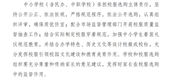 近日,重慶市教委與市場監(jiān)管局聯(lián)合發(fā)布的《關(guān)于進(jìn)一步加強(qiáng)中小學(xué)生校服管理工作的指導(dǎo)意見(征求意見稿)》,以“明確主體責(zé)任、強(qiáng)化家長監(jiān)督、鼓勵自主選購”為核心,為校服管理提供了一份兼具針對性與操作性的“重慶方案”。