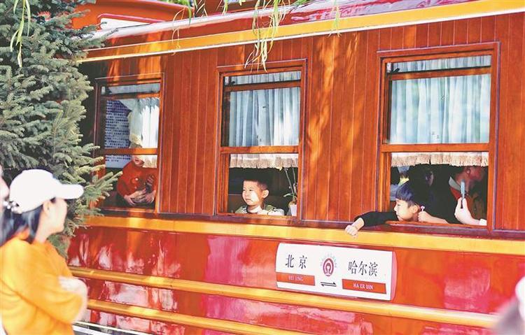 2日,在哈爾濱市兒童公園內(nèi),許多家長帶著孩子坐上小火車,一路歡笑地觀賞鐵軌沿線的美麗秋色。本報(bào)記者 蘇強(qiáng)攝