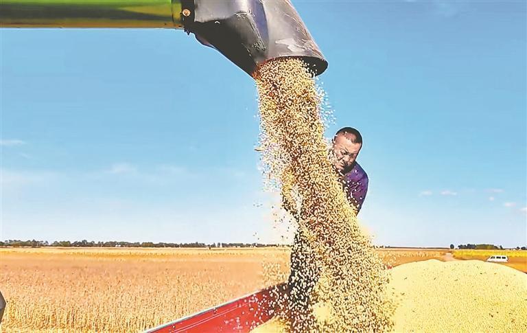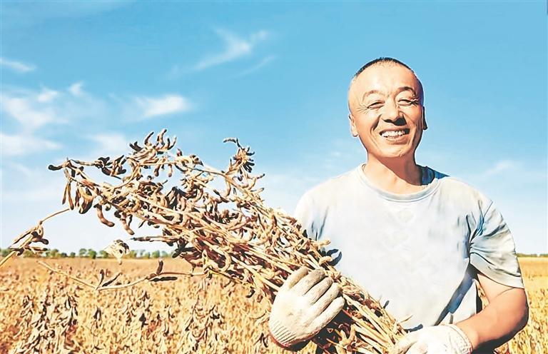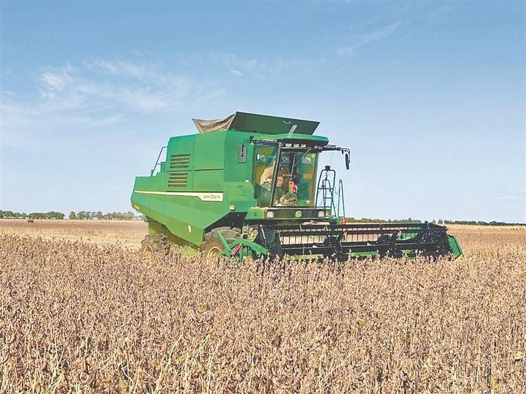 國慶假日,豐收時節(jié)。秋風(fēng)拂過寶清縣青原鎮(zhèn)的田野,連片的大豆田泛起金黃浪涌,飽滿的豆莢壓彎豆稈,收割機轟鳴作業(yè),農(nóng)戶們忙著分揀、裝袋,豐收的喜悅在田間地頭蔓延。