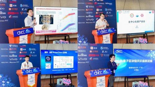 圖二 四大主題演講現(xiàn)場:北大、中大、廣州大學(xué)、港科大(廣州)專家解構(gòu)量子與區(qū)塊鏈金融安全協(xié)作方案