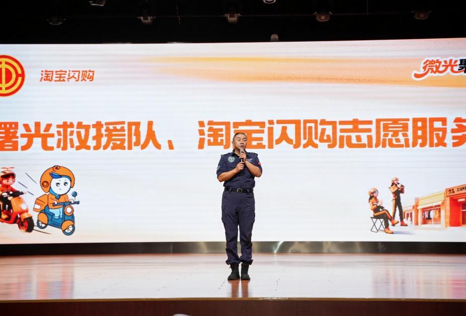 在福建廈門,曙光救援隊與淘寶閃購開展公益志愿共建活動
