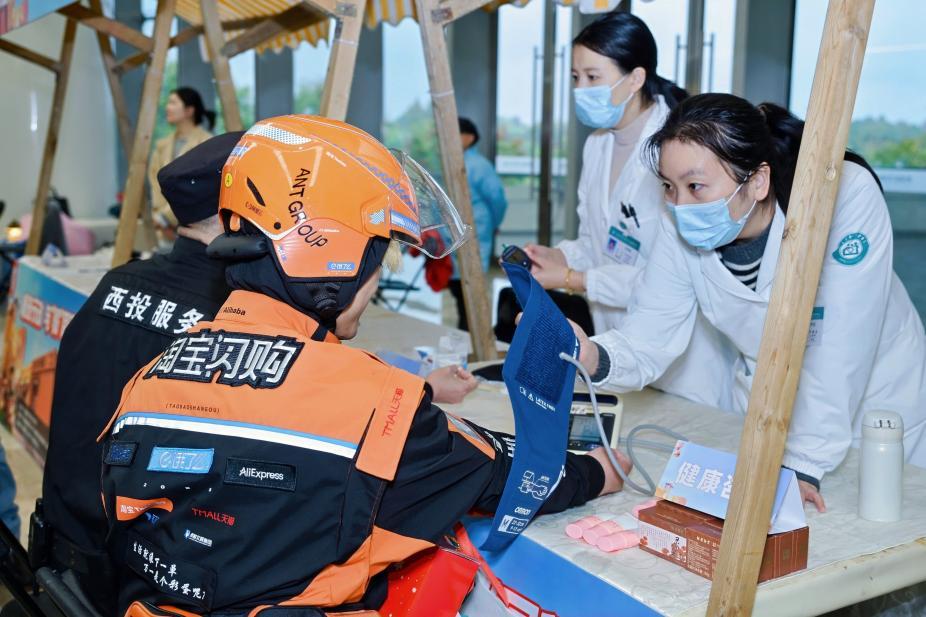 秋冬季節(jié)多發(fā)流感,全國各地、各級工會等主管部門聯(lián)合淘寶閃購,持續(xù)開展暖冬物資發(fā)放、免費體檢等活動。在貴陽、銀川、溫州、武漢等城市,騎士日活動還設置了專門的體檢車,為騎士提供便捷的健康檢查,在南京、成都等地開展義診。