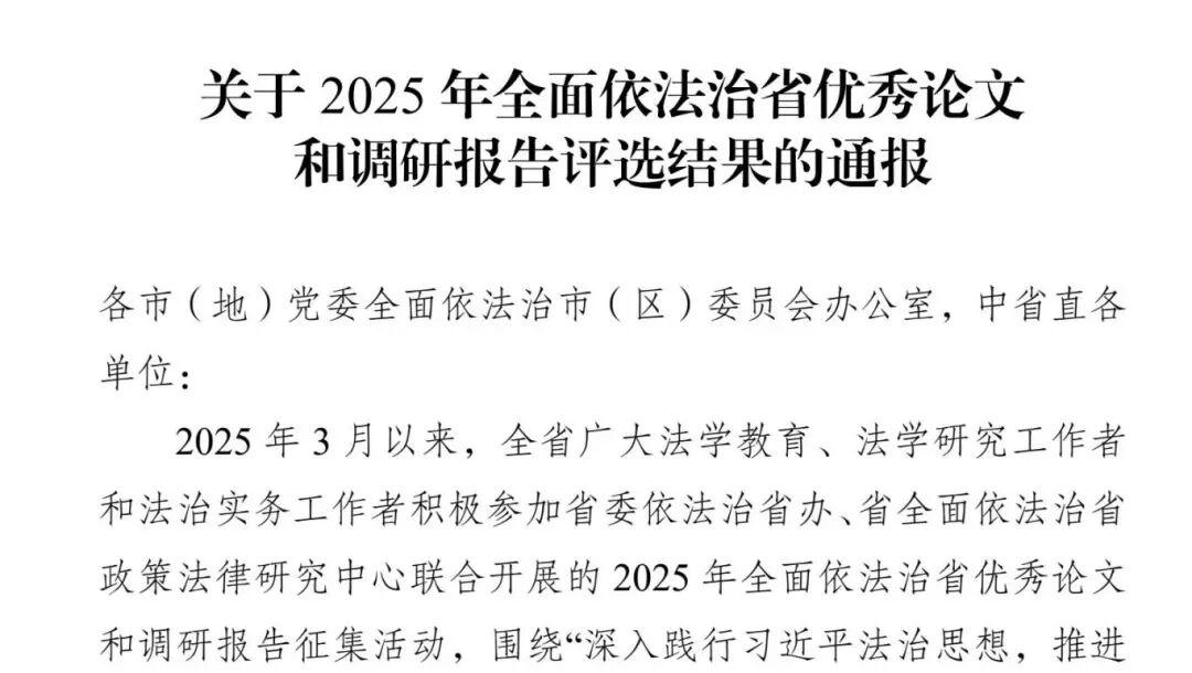 黑龍江經(jīng)濟網(wǎng)訊(董慧瑩 李雪松)近日,省委依法治省辦印發(fā)《關(guān)于2025年全面依法治省優(yōu)秀論文和調(diào)研報告評選結(jié)果的通報(黑法辦發(fā)〔2025〕10號)》,公布最終評選結(jié)果。本次評選活動共征集論文1370篇,經(jīng)初評復(fù)審,共有465篇論文進(jìn)入終評;經(jīng)學(xué)術(shù)不端檢測、評委會認(rèn)真審閱,最終評選出獲獎?wù)撐?86篇。肇東市人民法院報送參評論文8篇,共有3篇獲獎。