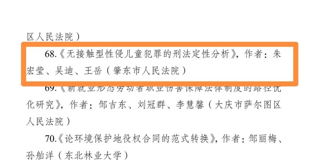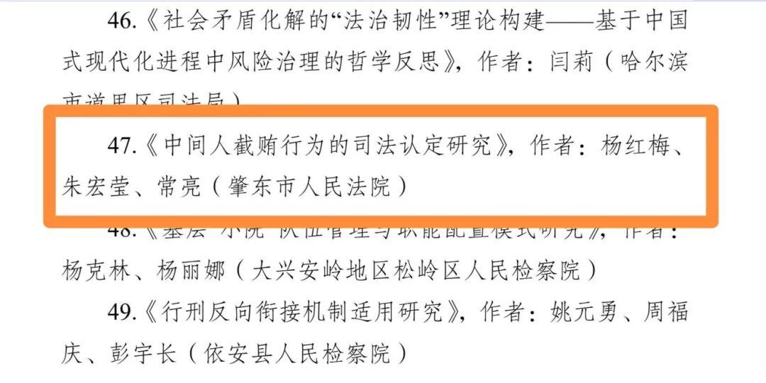 其中,督察室負(fù)責(zé)人楊紅梅、審管辦副主任朱宏瑩、審管辦副主任常亮撰寫的論文《中間人截賄行為的司法認(rèn)定研究》,榮獲三等獎;審管辦副主任朱宏瑩、五站人民法庭負(fù)責(zé)人吳迪、審管辦書記員王岳撰寫的論文《無接觸型性侵兒童犯罪的刑法定性分析》,榮獲優(yōu)秀獎;刑庭法官助理張瑩、刑庭庭長王帝撰寫的論文《涉訴信訪治理機制研究》,榮獲優(yōu)秀獎。