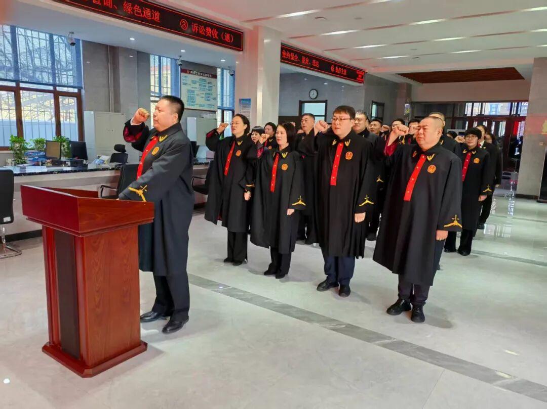 鏗鏘有力的誓言在全場(chǎng)回蕩,傳遞著人民法院干警對(duì)憲法的尊崇、對(duì)法治的信仰和對(duì)人民的承諾。