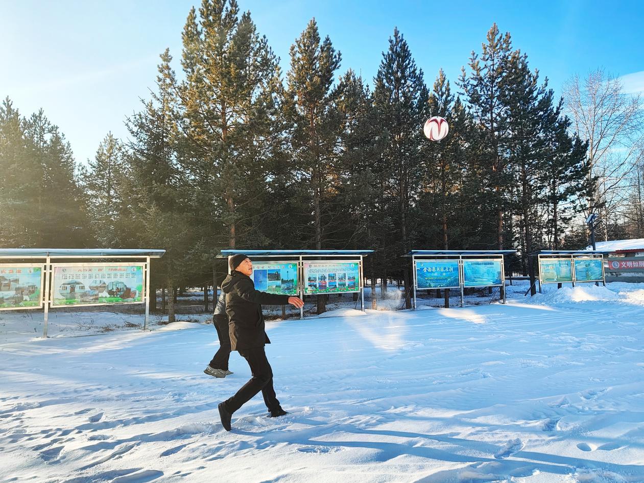 宏圖林場職工正在參加雪地足球賽(李婷 攝)