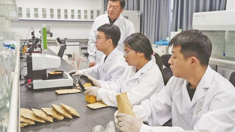 在國(guó)家現(xiàn)代農(nóng)業(yè)產(chǎn)業(yè)園的實(shí)驗(yàn)室,來(lái)自東北農(nóng)業(yè)大學(xué)的研究生正在對(duì)大豆種子進(jìn)行電腦數(shù)粒、離心分析密度等工作,為選育出高產(chǎn)、優(yōu)質(zhì)、多抗的專用大豆品種提供基礎(chǔ)數(shù)據(jù)支撐。