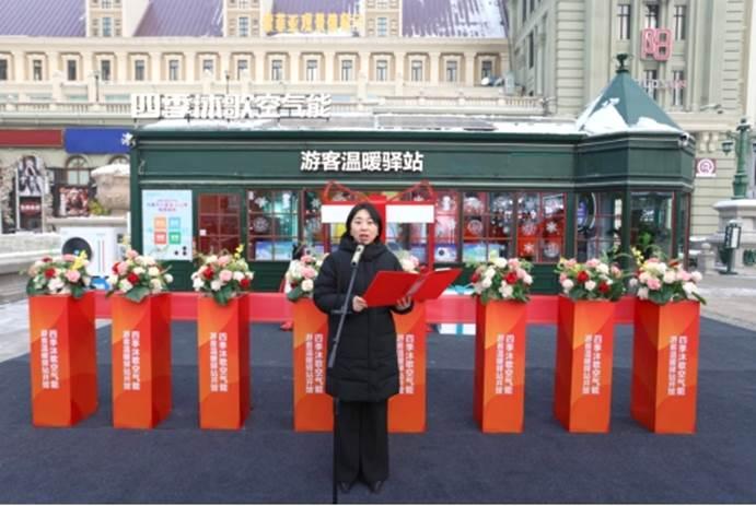 共青團(tuán)哈爾濱市委副書(shū)記徐翎致辭時(shí)指出,哈爾濱以“世界冰雪旅游卓越城市”之姿驚艷全球,這一火熱盛況背后,也讓四季沐歌集團(tuán)連續(xù)三年傾力打造游客溫暖驛站的堅(jiān)守與付出,收獲了高度肯定,企業(yè)以科技暖意驅(qū)散凜冬嚴(yán)寒、用清潔能源護(hù)航八方游客、以“雙碳”使命點(diǎn)亮城市溫度的責(zé)任擔(dān)當(dāng)更贏得社會(huì)廣泛贊許。她表示,團(tuán)市委將以游客溫暖驛站為紐帶,廣泛匯聚青春動(dòng)能和社會(huì)力量,為驛站建設(shè)添磚加瓦,也真誠(chéng)呼吁各界持續(xù)關(guān)注溫暖驛站發(fā)展、支持哈爾濱青年發(fā)展型城市建設(shè),攜手為冰城高質(zhì)量振興注入青春動(dòng)能。