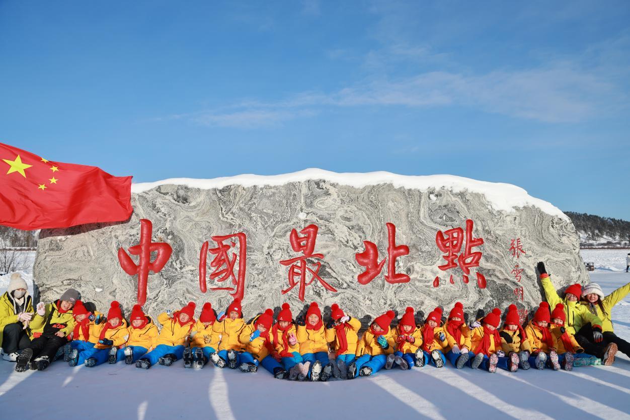 登上觀景臺那一刻,孩子們便踮起腳尖指向遠方,擠在欄桿邊,俯瞰龍江在腳下劃出完美的Ω形弧線?!褒埥谝粸澄覀儊砹恕焙⒆觽兊暮奥曊R劃一,隨即爆發(fā)出一陣勝利的歡呼。寒風凜冽,卻吹不散他們的熱情。“這是我們第三次帶孩子來這里,每一次都有新收獲?!睅ш犂蠋熣f,龍江第一灣的壯美雪景與獨特地理風貌,不僅讓南方孩子直觀感受到冰雪的魅力,更讓他們在親身實踐中收獲知識與成長。這場早已超越普通的研學之旅,成為連接南北的溫情紐帶,讓冬日嚴寒因這份童真與堅守而格外溫暖。