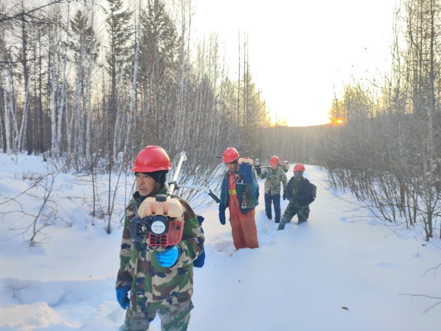 規(guī)范操作不松懈,筑牢安全“防護(hù)墻”。在各營林作業(yè)現(xiàn)場(chǎng),寒風(fēng)凜冽卻擋不住職工們的工作熱情。大家嚴(yán)格遵守冬季營林作業(yè)規(guī)程,統(tǒng)一佩戴安全帽穿梭在林間,有條不紊地開展林木修枝、病腐木清理、林地?fù)嵊裙ぷ鳌S弯徥謬?yán)格執(zhí)行“先檢查、再啟動(dòng)、穩(wěn)操作”的流程,精準(zhǔn)把控作業(yè)角度;撫育隊(duì)員踩著厚雪,手持工具對(duì)林間枯死木、被壓木及對(duì)目的樹種生長存在影響的進(jìn)行有序清理、歸堆。從器械檢查到流程落實(shí),每一個(gè)環(huán)節(jié)都嚴(yán)謹(jǐn)規(guī)范,安全帽上的反光條在皚皚白雪中格外醒目,成為林海間一道守護(hù)安全的風(fēng)景線。