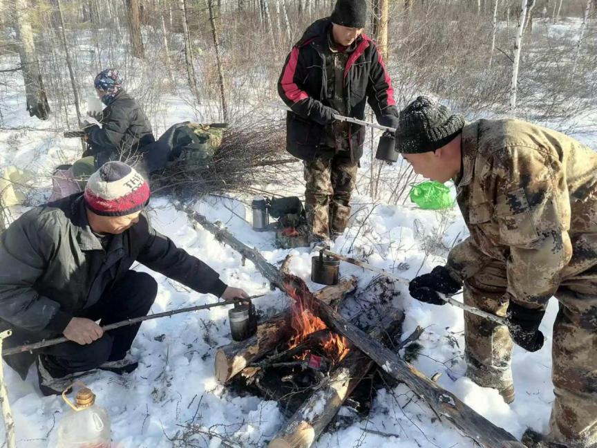 餐風(fēng)飲雪不言苦,苦中作樂顯擔(dān)當(dāng)。正午時(shí)分,忙碌的作業(yè)暫告一段落,林間背風(fēng)處便成了臨時(shí)“餐桌”。職工們聚在一起,圍坐在火堆旁,就著寒風(fēng),分享著熱氣騰騰的盒飯。沒有舒適的就餐環(huán)境,只有白雪皚皚的林海作伴;沒有豐盛的佳肴,只有簡(jiǎn)單的飯菜暖胃暖心。大家邊吃邊聊,交流著當(dāng)天的作業(yè)進(jìn)度,分享著林區(qū)里的新鮮事,爽朗的笑聲回蕩在林間。艱苦的條件絲毫沒有消減大家的干勁,反而凝聚起攻堅(jiān)克難的強(qiáng)大合力,這便是育英林場(chǎng)人獨(dú)有的“苦中作樂”,更是對(duì)綠水青山的執(zhí)著堅(jiān)守。