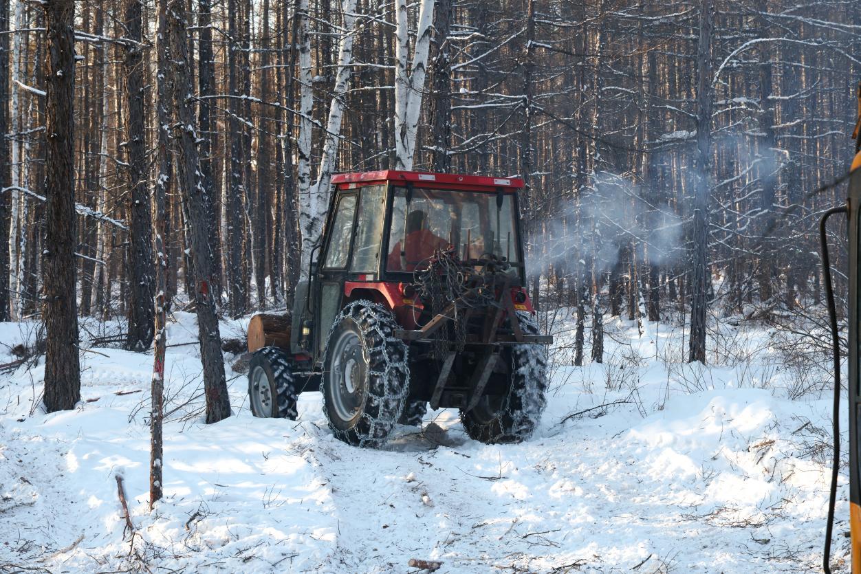 阿木爾林業(yè)局職工駕駛拖拉機向作業(yè)場地駛去(王力 攝)