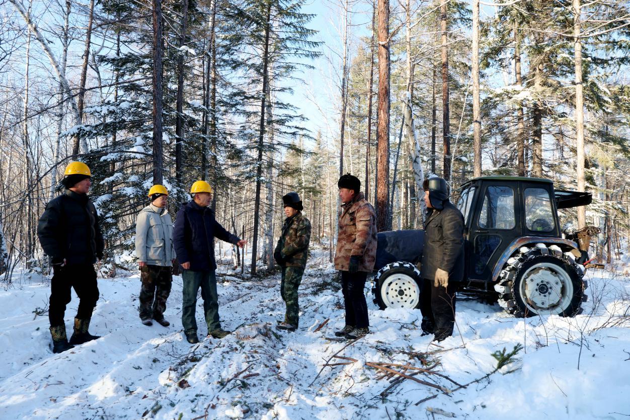 阿木爾林業(yè)局生態(tài)修復管理科工作人員深入到作業(yè)場地,講解安全生產相關注意事項(王力 攝)