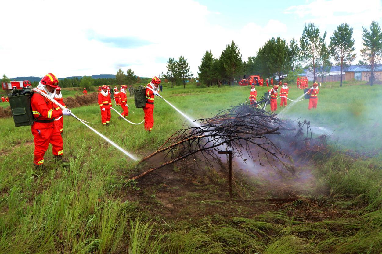 阿木爾林業(yè)局森防隊員演練“以水滅火”科目(王力 攝)