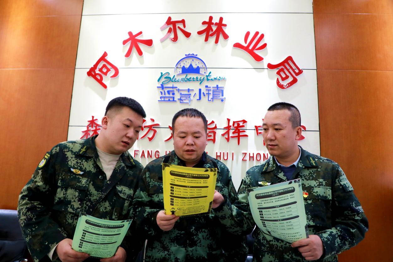 阿木爾林業(yè)局防火辦職工利用宣傳單,學習《集團干部職工行為規(guī)范》(王力 攝)