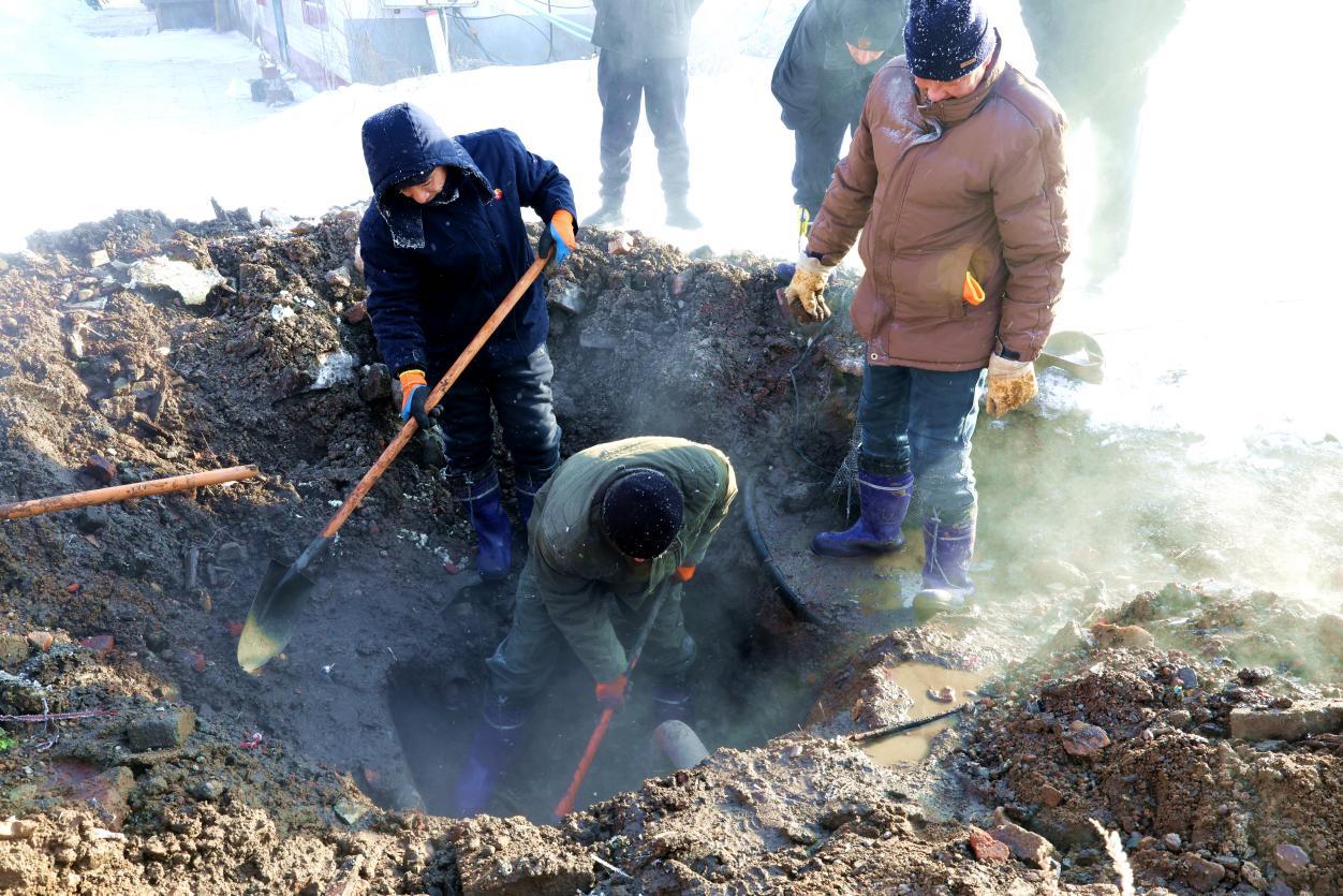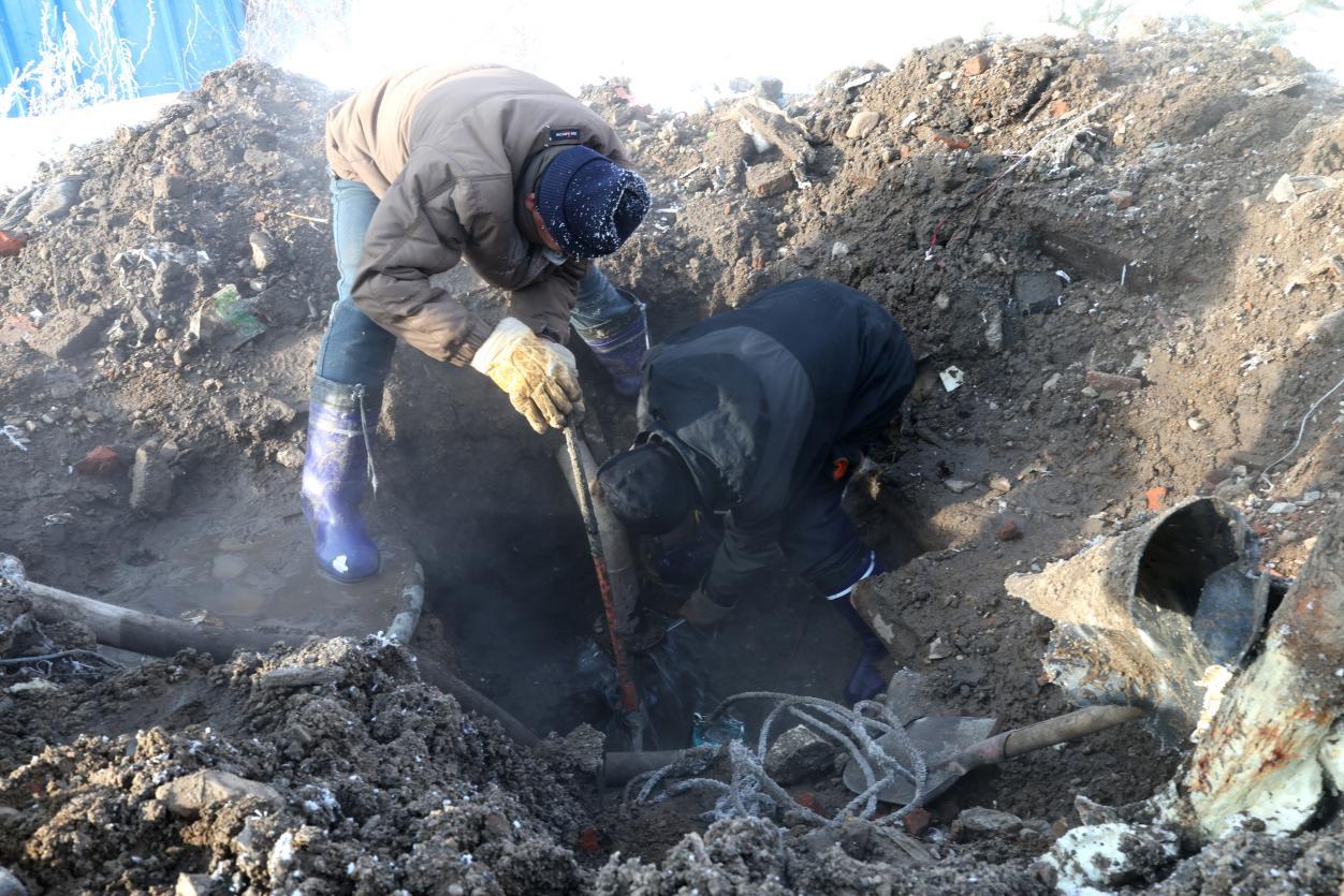 因地下管線錯綜復雜,且極寒天氣易導致管道凍裂,搶修人員采取邊供暖、邊排水、邊人工開挖的方式推進作業(yè),防止管線被凍擴大輻射面。地面破開后熱水持續(xù)涌出,搶修人員輪番上陣,清理凍土、排查漏點,歷經3小時奮戰(zhàn),至11時40分挖出1.8立方米深坑,精準定位漏點為供暖分線軟接頭老化,此時跑水量已達每小時4噸。為控制漏損,搶修人員當即關閉分線閥門,受此影響,周邊20余戶居民供暖暫時中斷。