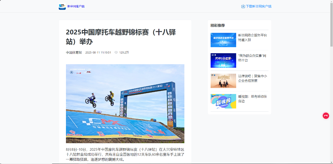 ——主題宣傳聲勢強(qiáng)勁,上央媒、亮品牌。聚焦生態(tài)建設(shè)、產(chǎn)業(yè)發(fā)展、先進(jìn)典型等,深挖工作亮點,全媒體發(fā)稿量超3800篇,其中國家級媒體310余篇、省級媒體270余篇。《2025中國摩托車越野錦標(biāo)賽舉辦》《小熊下樹!哎喲喲下得挺快》等作品登上央視新聞、新華社、光明網(wǎng)、學(xué)習(xí)強(qiáng)國、中國綠色時報等國家級平臺;2025中國摩托車越野錦標(biāo)賽、文藝演出等活動通過新華社現(xiàn)場云等平臺直播,總點擊量超300萬次,“十八驛站”知名度與美譽(yù)度顯著提升。