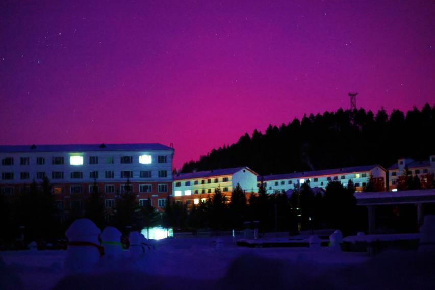 當(dāng)日清晨5時30分,阿木爾林業(yè)局北方天空悄然浮現(xiàn)橘紅色北極光,澄澈夜空中,流動的極光如彩綢漫舞,搭配漫天璀璨星河、靜謐連綿群山,還有城鎮(zhèn)里惺忪的燈光,共同勾勒出一幅夢幻綺麗的北國畫卷,裸眼即可清晰觀賞。當(dāng)?shù)鼐用裉婆康谝粫r間記錄下這一美景,難掩興奮:“往年總盼著夏至能拍到北極光,沒想到冬季也能邂逅這般盛景,親身感受宇宙的壯麗浩瀚,太幸運(yùn)了!”