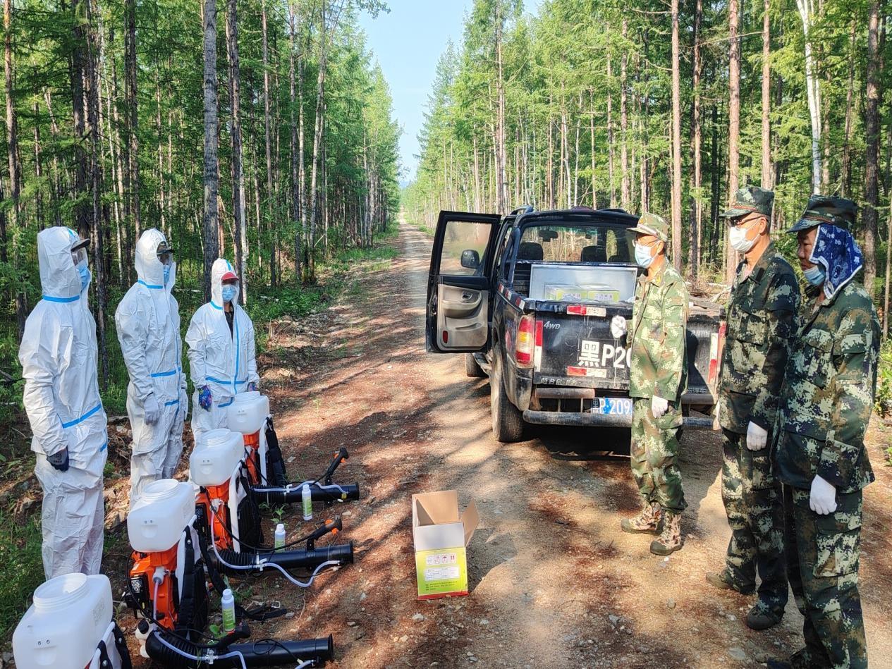新林林業(yè)局專業(yè)技術人員在開展病蟲害防治工作(張瑩 攝)