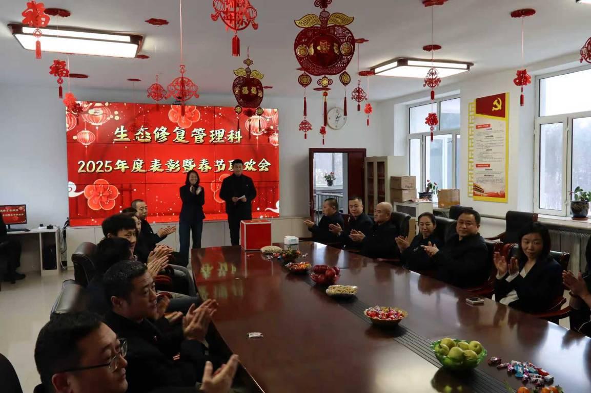 活動(dòng)在歡快的音樂中拉開帷幕。主持人深情回望2025年,這一年,科室全體同仁深耕生態(tài)修復(fù)一線,頂風(fēng)冒雨、攻堅(jiān)克難,圓滿完成各項(xiàng)工作任務(wù),用實(shí)干守護(hù)綠水青山,用堅(jiān)守詮釋生態(tài)人的初心使命。生態(tài)修復(fù)管理科科長于召民為活動(dòng)致辭,既肯定了科室全體干部職工過去一年的辛勤付出,也為2026年工作指明方向、注入動(dòng)力,贏得全場(chǎng)陣陣掌聲。