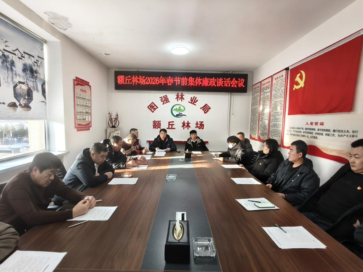廉政談話明底線,承諾踐諾守初心。額丘林場召開春節(jié)前集體廉政談話會(huì),專題傳達(dá)學(xué)習(xí)上級(jí)關(guān)于春節(jié)期間廉潔過節(jié)的通知要求,原文解讀相關(guān)通知精神與紀(jì)律規(guī)定,確保全體黨員干部精準(zhǔn)把握節(jié)日廉潔核心要義。會(huì)議結(jié)合關(guān)鍵崗位風(fēng)險(xiǎn)特點(diǎn),聚焦違規(guī)收送禮品禮金、違規(guī)吃喝等易發(fā)“節(jié)日病”,明確禁止性要求,督促黨員干部繃緊紀(jì)律之弦。談話會(huì)后,組織全體黨員簽訂《春節(jié)期間廉潔自律承諾書》,承諾書緊扣上級(jí)要求梳理8項(xiàng)核心準(zhǔn)則,從遵守中央八項(xiàng)規(guī)定精神到杜絕違規(guī)操辦婚喪喜慶事宜,逐條細(xì)化規(guī)范,推動(dòng)廉潔要求內(nèi)化于心、外化于行。