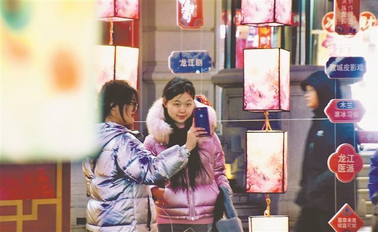 臨近春節(jié),哈爾濱市道里區(qū)松花江畔,一組以“大美龍江·非遺季”為主題的彩燈點亮,吸引許多游客駐足觀看、拍照。現(xiàn)場懸掛的近千盞彩燈有多種顏色,烘托出濃濃的喜慶氣氛。彩燈扮靚了江畔,也為冰城再添一處美景。