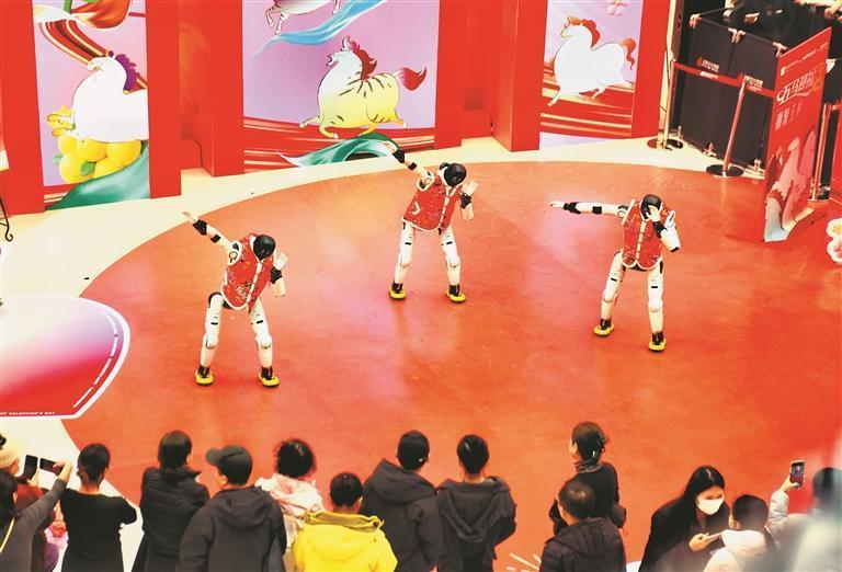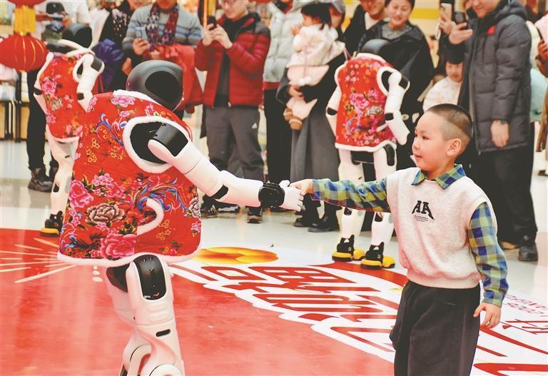 19日,正月初三。哈爾濱市道里區(qū)一家大型商場舉行了機器人舞蹈表演,吸引許多市民游客駐足觀看。走進(jìn)場地的三個機器人身高1.5米左右,穿著紅色棉坎肩,十分喜慶。在音樂伴奏下,它們翩翩起舞,動作整齊劃一。表演結(jié)束后,機器人走進(jìn)人群,與大家握手、合影、互動。春節(jié)假期,哈爾濱市多家商場都推出了機器人表演,讓市民游客與最新科技來個親密接觸。