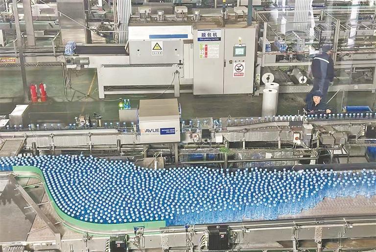 “吹瓶、灌裝、旋蓋一體機(jī)是我們生產(chǎn)線上最有含金量的設(shè)備,瓶坯經(jīng)過高溫加熱、壓縮空氣吹制,再完成灌裝、旋蓋,全程無(wú)菌操作,確保每一滴水都純潔無(wú)瑕?!鄙a(chǎn)車間主任劉恒介紹,該設(shè)備生產(chǎn)能力可達(dá)每秒10瓶,搭配全新的視覺檢測(cè)儀、稱重機(jī)和每分鐘可打包30箱產(chǎn)品的箱包機(jī),讓生產(chǎn)效率與產(chǎn)品標(biāo)準(zhǔn)雙提升。