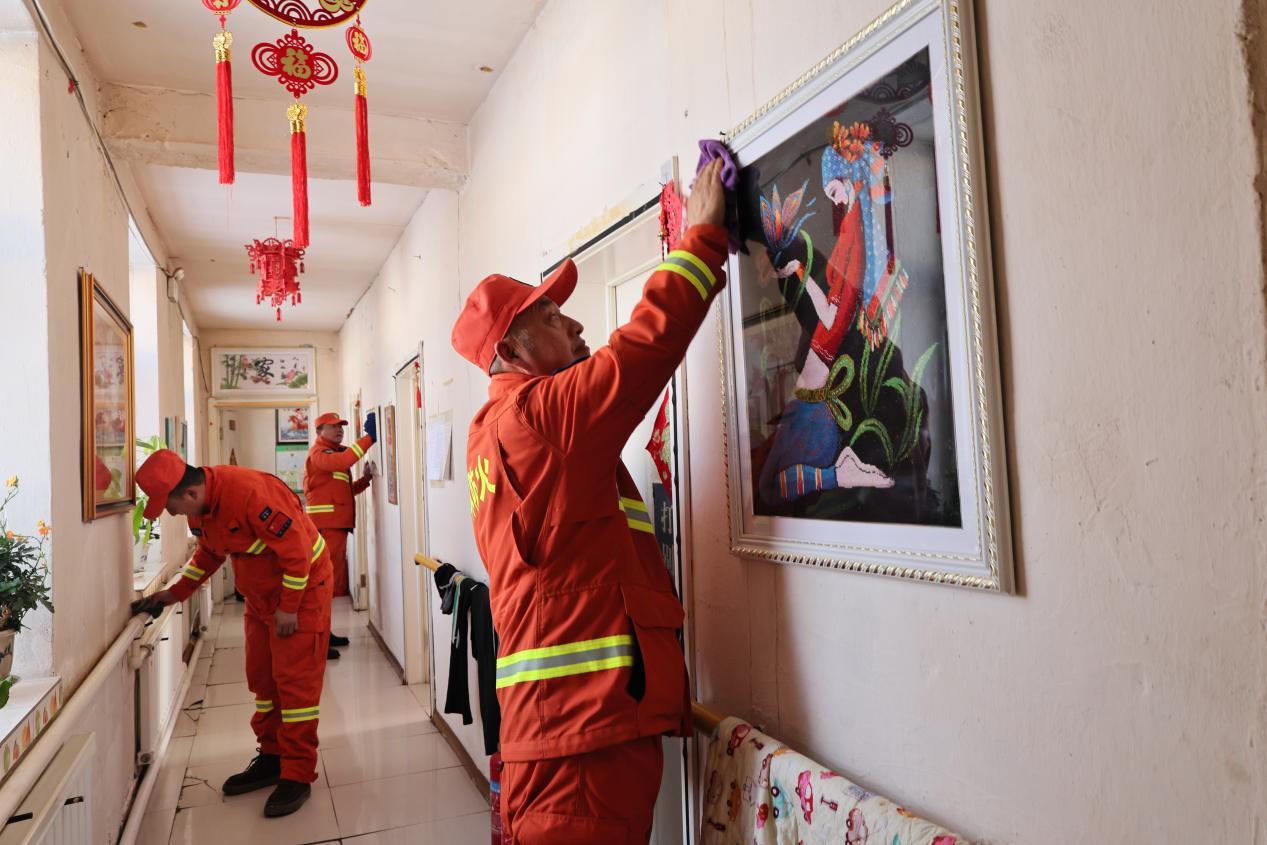 室外干勁十足,室內溫情融融。志愿者們有的與老人促膝長談、嘮起家常,詳細詢問身體狀況和生活需求;有的拿起掃帚、抹布,細致清掃地面、擦拭門窗,把房間收拾得整潔明亮,用貼心服務溫暖老人心田。