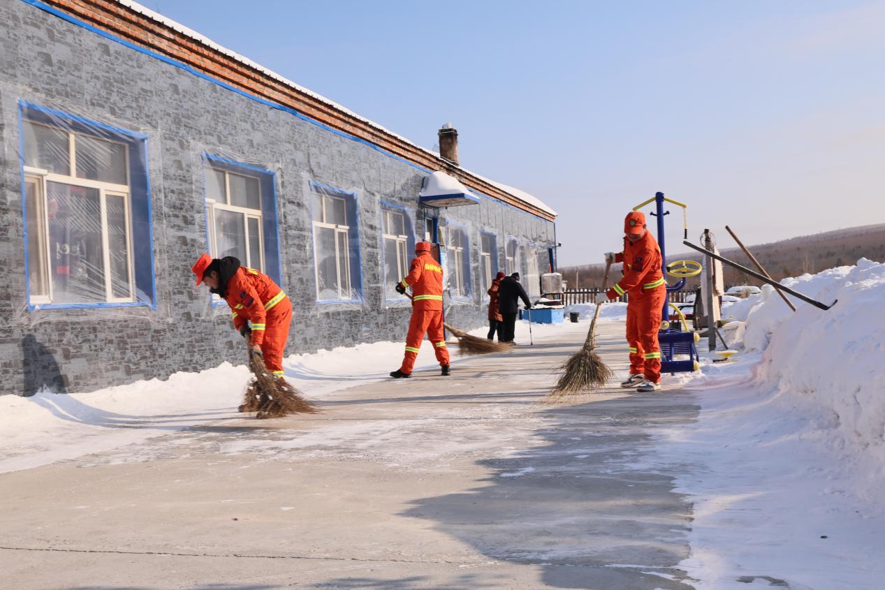 活動現(xiàn)場,機械轟鳴、黨旗飄揚。黨員志愿者們發(fā)揚防火隊伍特別能吃苦、特別能戰(zhàn)斗的精神,分工協(xié)作、奮力爭先,揮舞鐵鍬清除院內外、道路及角落的積雪積冰,認真清理垃圾雜物,一派熱火朝天的勞動景象。