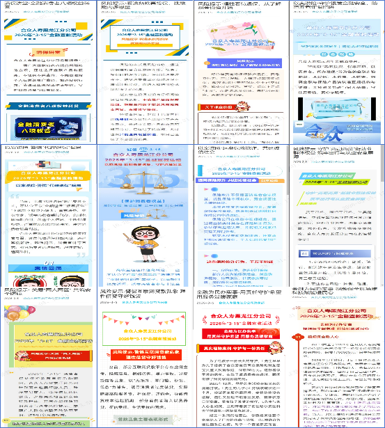 為全面貫徹落實(shí)中央經(jīng)濟(jì)工作會(huì)議、中央金融工作會(huì)議精神,深刻把握金融工作政治性、人民性,助力提升社會(huì)公眾金融素養(yǎng),幫助社會(huì)公眾增強(qiáng)維護(hù)自身合法權(quán)益的意識(shí)和能力。合眾人壽黑龍江分公司按照監(jiān)管部門及總公司有關(guān)工作要求,組織所轄各單位同步全面落實(shí)開展2026年“3·15”金融消費(fèi)者權(quán)益保護(hù)教育宣傳活動(dòng)。